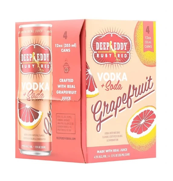 “Deep Eddy Ruby Red Grapefruit and Soda RTD in a Can. Crisp, clean and refreshing made with original Deep Eddy Ruby Red Grapefruit Vodka. Only 120 calories, this is the perfect summer treat”