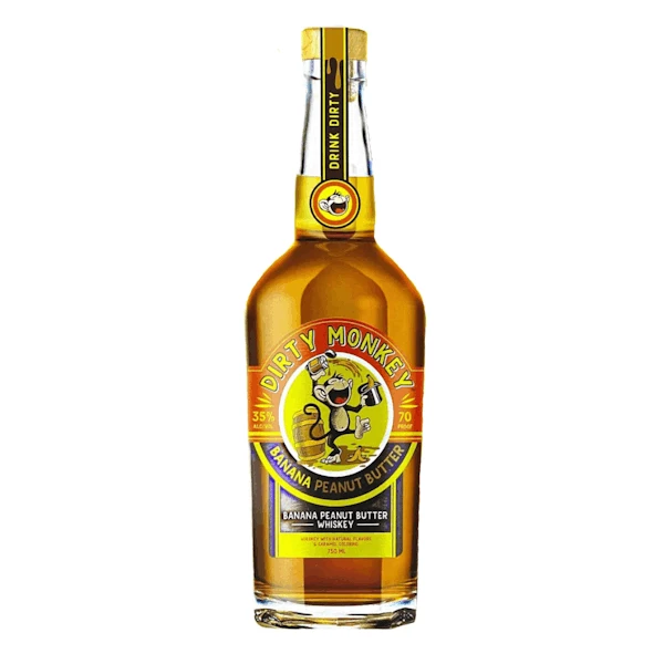 “A trailblazer in growing innovative spirits brands, proudly unveils its latest creation, the free-spirited Dirty Monkey Banana Peanut Butter Whiskey. This delicious new release is crafted with real whiskey, all-natural peanut butter and banana flavors blended to ignite your sense of adventure and have your taste buds swinging with delight. In addition to being all-natural, Dirty Monkey is allergen-free and contains absolutely no high-fructose corn syrup.”